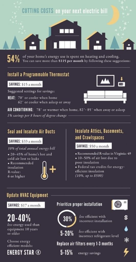 Inspect your air ducts for any leaks, gaps or disconnects – these can easily be responsible for a heating bill that is 20% higher, or more, than if you were to seal these leaks. Hire a professional if you don’t feel comfortable doing this yourself – they can also clean the air ducts if necessary. The cost for hiring an expert will easily pay for itself in heating bill savings.