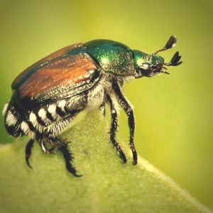The beetle family contains a vast range and size of beetle. Some are good for the garden such as ladybugs. Ladybugs are predators of aphids and so should be encouraged into the garden. Others such as the cardinal beetle are more destructive. Flea beetles are destructive to crops and will attack leaves and seedlings. Although there are many varieties, beetles can be identified by their hard protective wings covering their body. Most beetle species can fly, and are rather mobile.