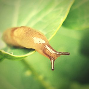 Slugs and snails are closely related, though slugs lack visible shells. These pests share the same modes of operation. They usually limit daylight excursions to dark, cloudy days. On sunny days, you’ll find them hiding in garden debris, under boards or in similar moist places. Most slug and snail damage occurs after dark. Large, irregular holes in leaves or petals, and succulent stems snipped in half, signal an invasion is underway. Silvery, slimy trails of drying mucus offer conclusive evidence.