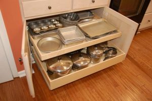 Even more space can be created with toe-kick drawers. These use the space under your cabinetry that is usually wasted. They are great for platters and large flat items. Due to their height they are not as easy to use as a normal drawer and so items that you do not use a lot should be stored here.