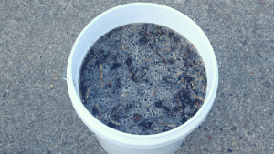 Start by filling your bucket about 1/3 full of compost. Use compost from the bottom of your pile, where organic matter has decayed the most and is teeming with life.
