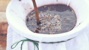 At the end of 5 to 7 days, simply strain the mixture through a piece of burlap, mesh screen or a strainer, and you are left with the magical liquid gold fertilizer called compost tea!