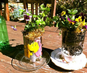 (TIP: Using different colored cotton remnants will add color to your recycled bottle garden.)